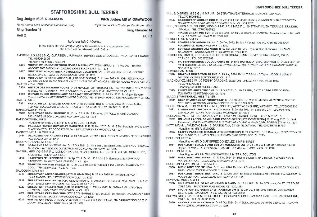 | Staffordshire Bull Terrier - Judge: Mrs K Jackson & Mr M Grimwood | |